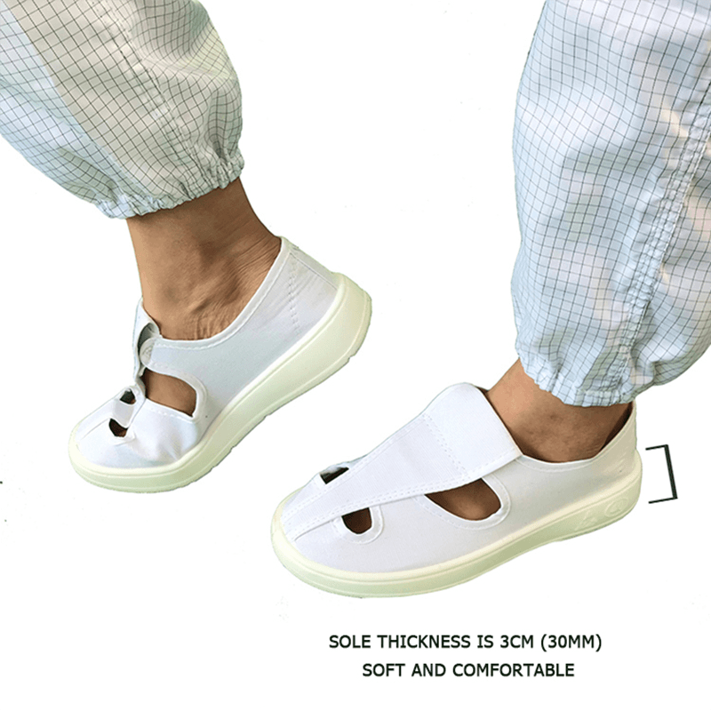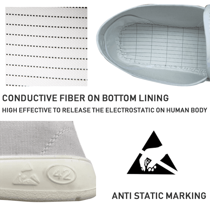 Az anti-statikus cipők kulcsfontosságú védőeszközök a gyártási műhelyek és a fejlett laboratóriumok számára a mikroelektronikai iparban, például a kommunikációs berendezések és az integrált áramkörök számára. Úgy tervezték, hogy csökkentsék vagy kiküszöböljék a statikus villamosenergia -veszélyeket azáltal, hogy az emberi test által generált statikus villamos energiát biztonságosan a talajhoz vezetik a talajhoz. Ez hatékonyan megakadályozhatja a statikus elektromosságot, hogy károsítsa az érzékeny elektronikus berendezéseket és termékeket, és megvédje a termelési környezet és a termékminőség stabilitását.