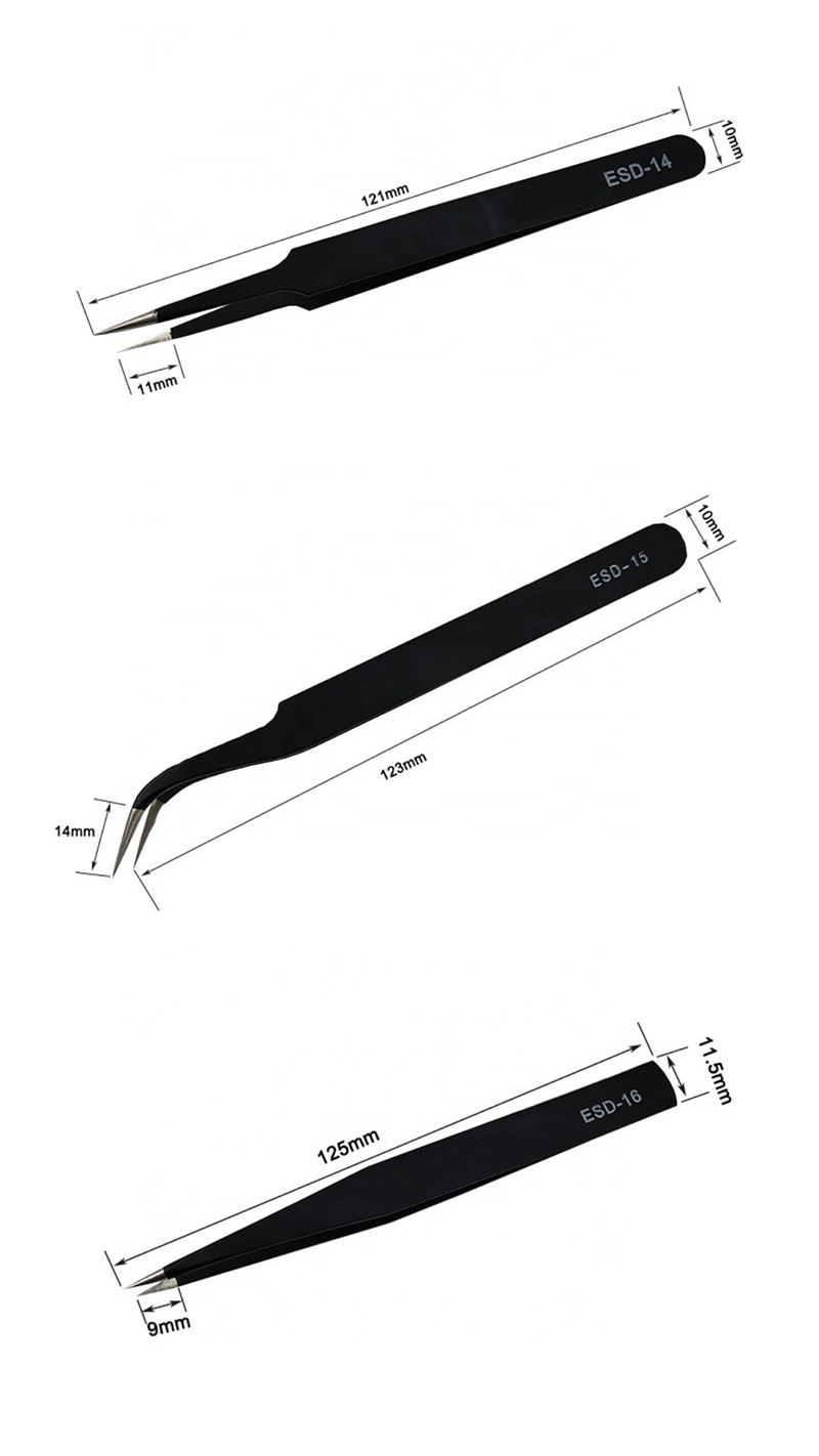 2. ESD-11 (nagy): A hegy hosszabb, alkalmas a precíziós elektronikus alkatrészek finom műveleteinek.